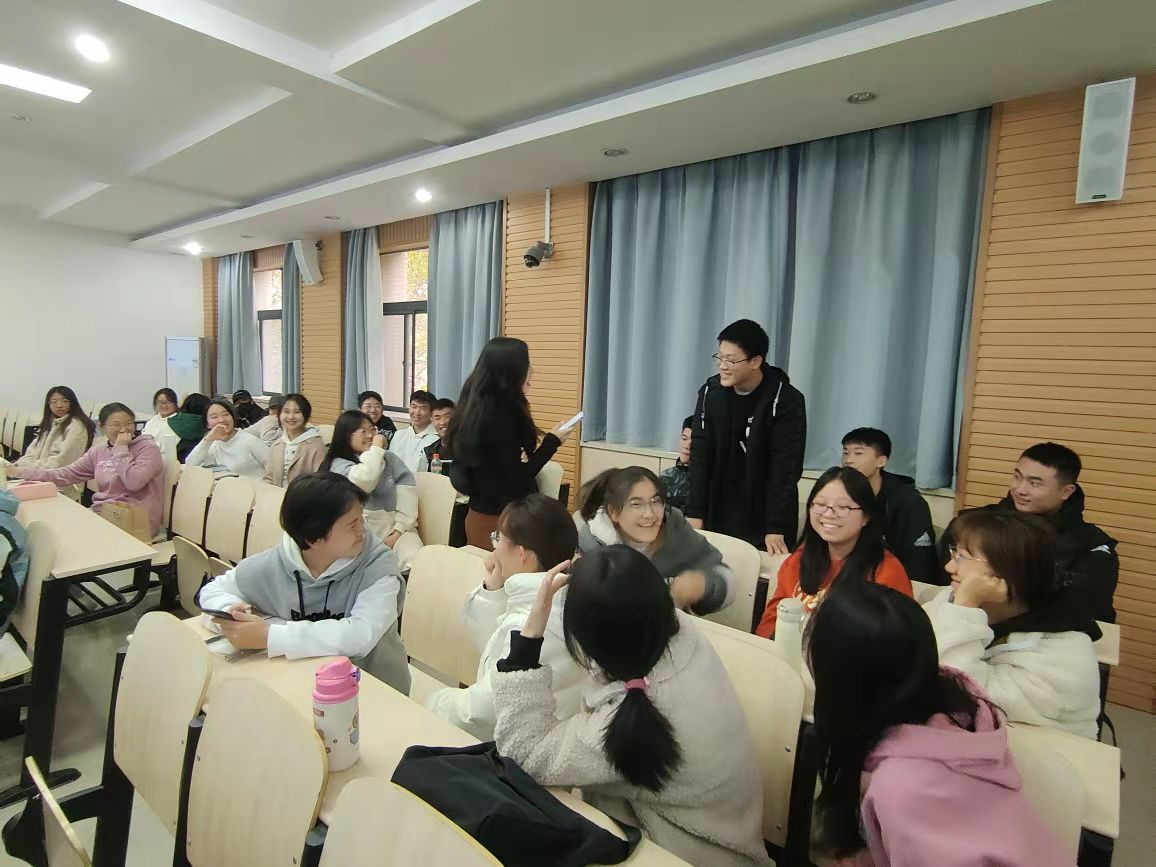 班会一开始,同学们一一进行自我介绍,说出了自己对大学四年生活的大致规划以及毕业后的目标。梁老师以幽默风趣的方式与每位同学进行互动,同学们分享自己想法的氛围越来越浓烈。