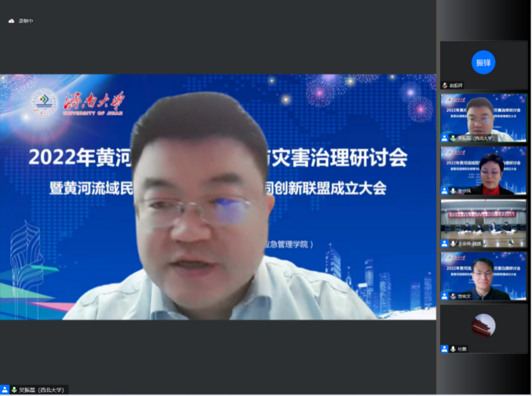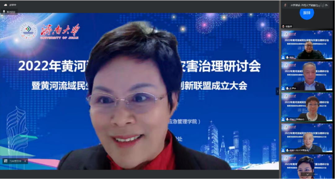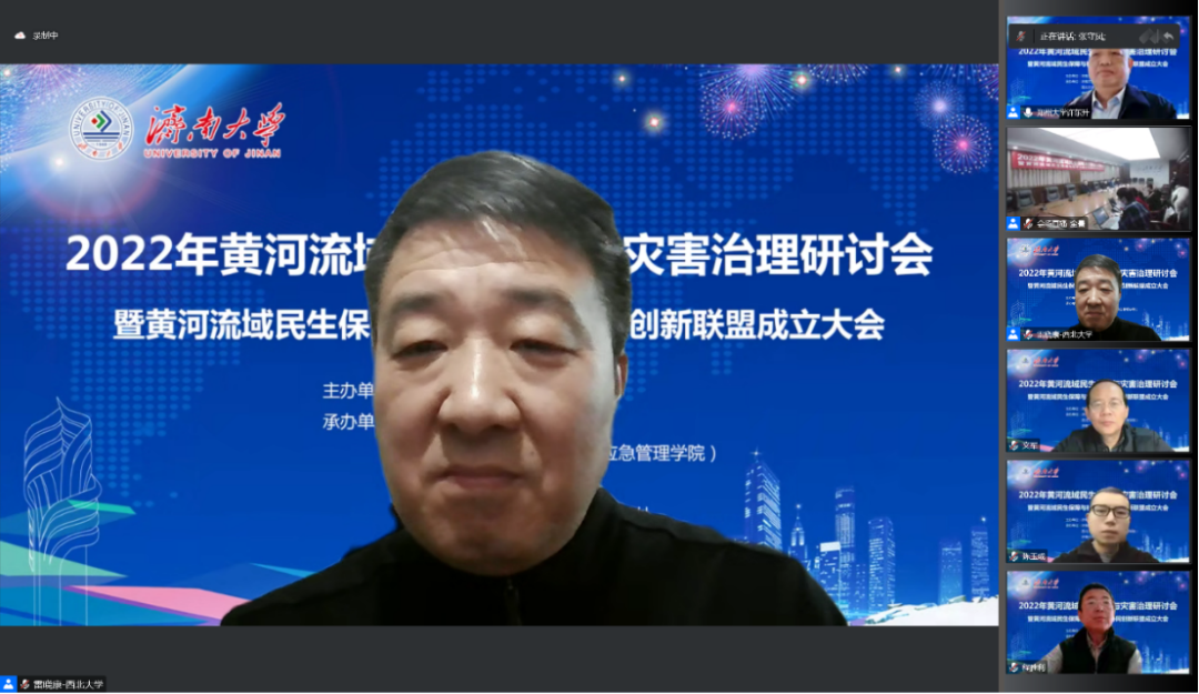 2022年12月10日,由济南大学与西北大学联合主办,济南大学政法学院、565net必赢客户端、济南大学社科处及济南大学发展规划与学科建设处联合承办,由新时代社会治理与政策创新研究基地(山东省社科理论重点研究基地)、民政部全国民政政策理论研究基地、计算社会科学与数字社会治理山东省高校文科实验室、中国老龄协会老龄科研基地、山东省人大常委会地方立法研究服务基地协办的“2022年黄河流域民生保障与灾害治理研讨会暨黄河流域民生保障与社会治理协同创新联盟成立大会”在腾讯会议线上举行,会议由《社会科学》、《山东大学学报》(哲学社会科学版)、《西北大学学报》(哲学社会科学版)、《南通大学学报》(社会科学版)、《济南大学学报》(社会科学版)提供学术支持。来自国家减灾委、中国行政管理学会、中国政治学会、中国社会保障学会、中国人民大学、武汉大学、山东大学、兰州大学、济南大学、西北大学、华中师范大学等50多家高校与研究机构的250余位专家学者和师生代表参加会议。