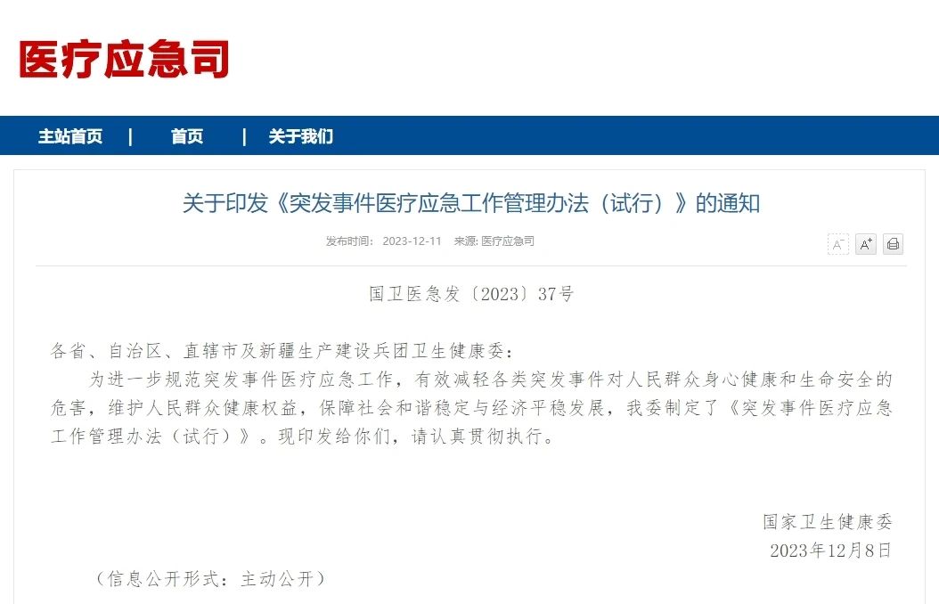 (关于印发《突发事件医疗应急工作管理办法(试行)》的通知)